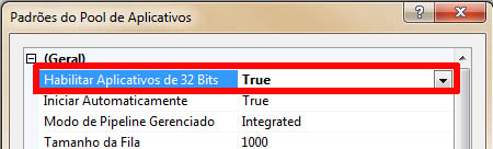 Em "Habilitar Aplicativos de 32 bits", coloque True