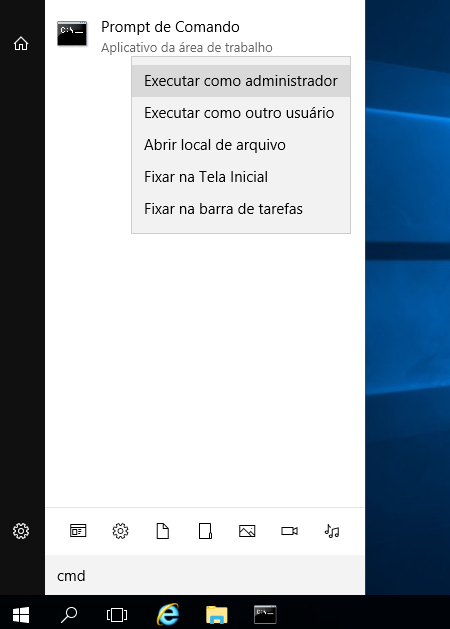 Abra o Prompt de Comando usando a opção Executar como Administrador como mostra a imagem abaixo