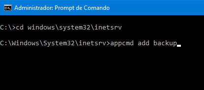 No prompt de comando digite appcmd add backup <nomedobackup>. Caso você não digite o nome do backup o sistema irá nomeá-lo usando um formato de data e hora do servidor.