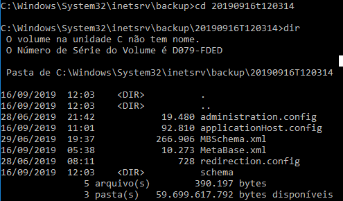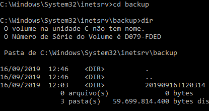 O backup feito desse trabalho, se encontra na pasta C:\Windows\System32\inetsrv\backup\