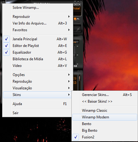 1 - Altere para o skin para Winamp Modern